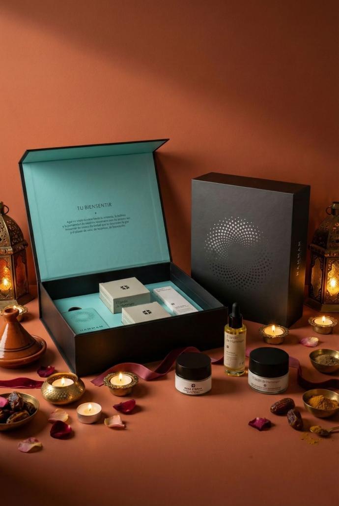 La Caja Regalo Zahrat incluye una tarjeta regalo para un masaje facial en nuestro Aljibe Experiencial, acompañada de una crema facial, contorno de ojos y Óleo Elixir de nuestra línea Rosa Eterna, formulados para nutrir, regenerar y envolver la piel en una experiencia sensorial profunda.